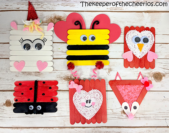 These Valentines Day Craft Stick Projects are so much fun and so easy for kids to make. With a Valentines day bee, Unicorn, Owl, Love bug, Fox and ladybug, the kids have tons of ideas to choose from.