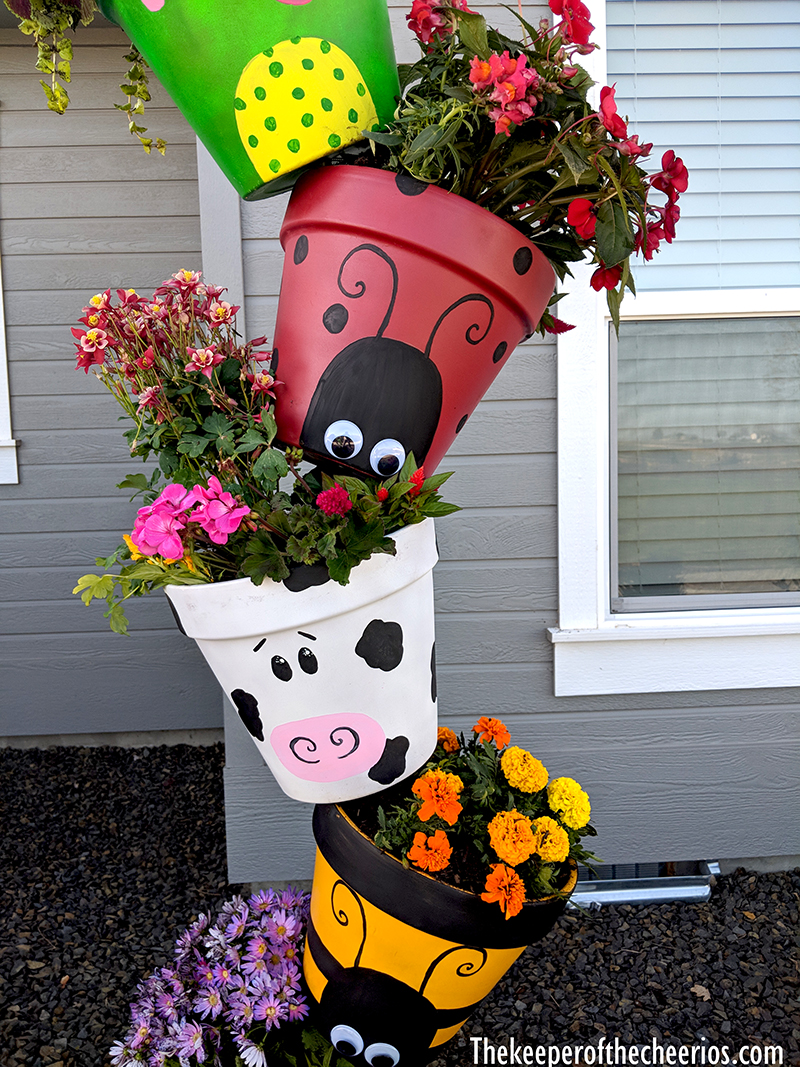 These Topsy turvy planters are so fun to make and seriously look adorable in your yard! We made some fun Christmas ones this past winter (see them HERE), and with them being such a big hit we decided we had to whip up some fun spring and summer ones as well.