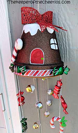 5. Thread the other side through the hole in the clay pot and second washer, glue washer to the top and add a second knot on the top half (glue down to washer)