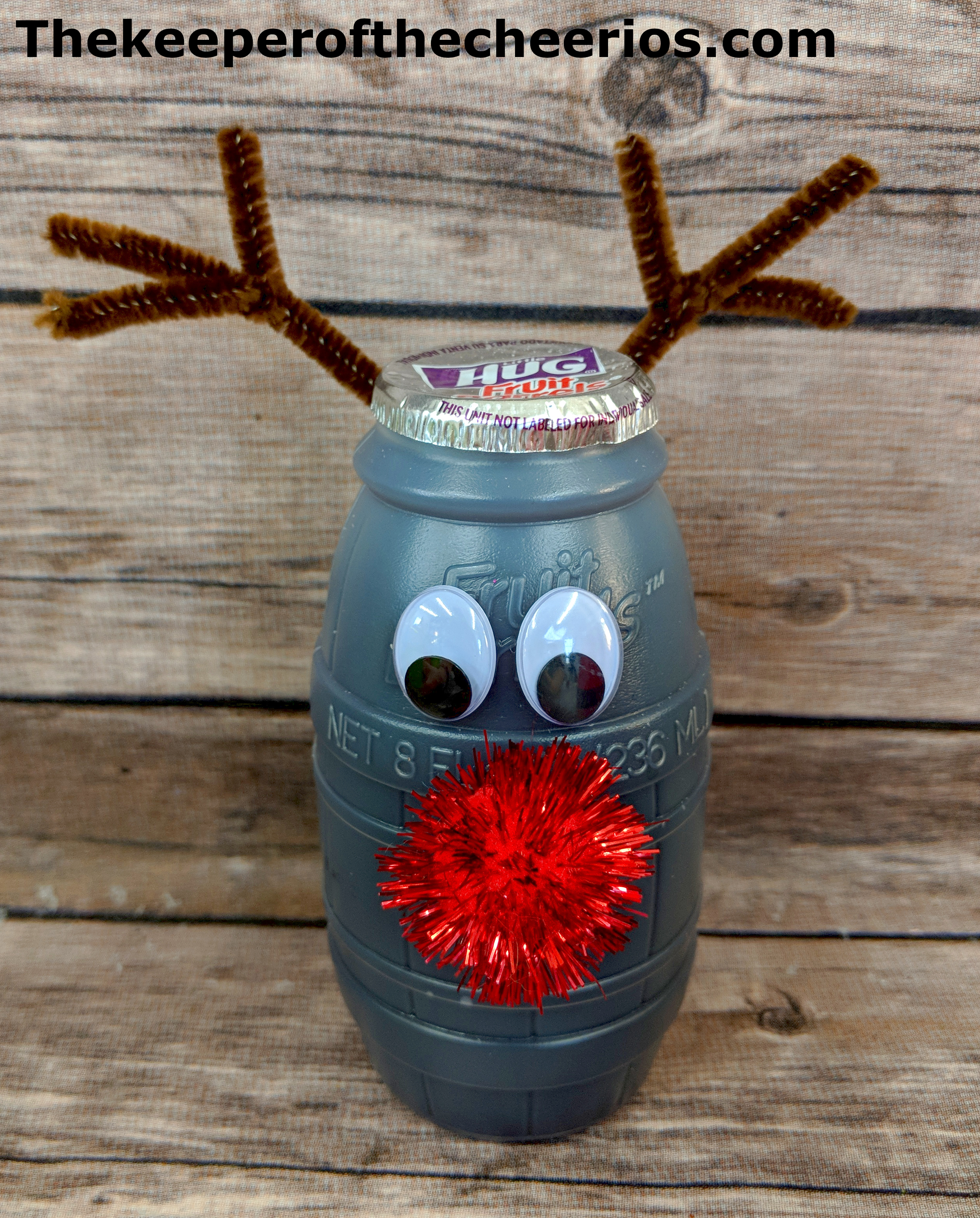 - For Rudolph glue on a red pom pom, 2 wiggle eyes and some chenille stem antlers