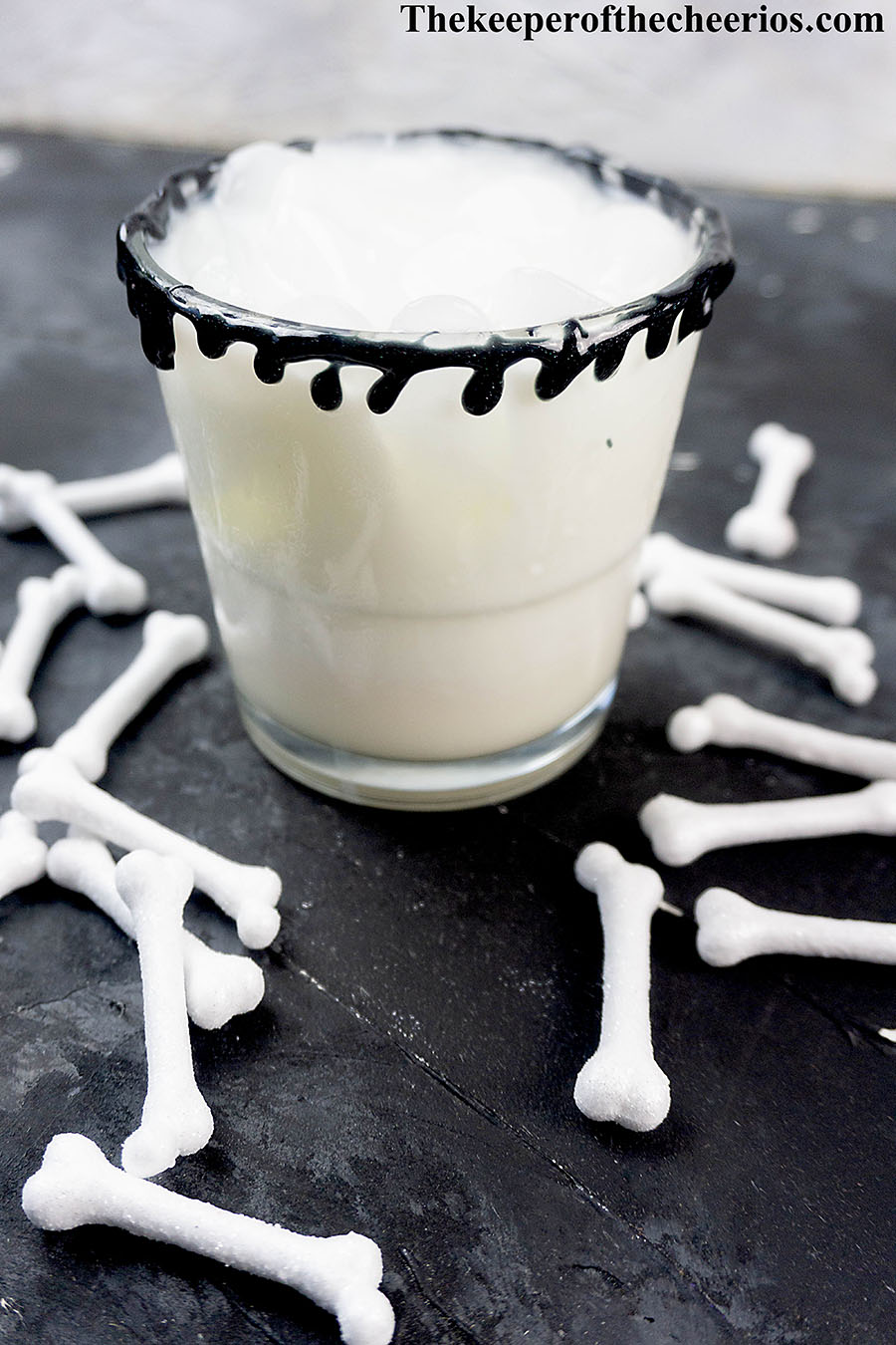Decorate the rim of the glass with stitch with the black sparkle gel icing.