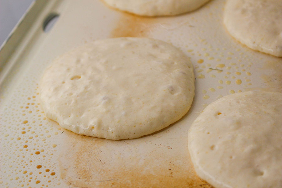 - Place warm pancakes on a curved surface or place two pancakes back to back.